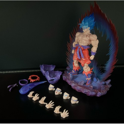 IN STOCK EC TOYS Kaiohken blue hair Goku action figure with stand
